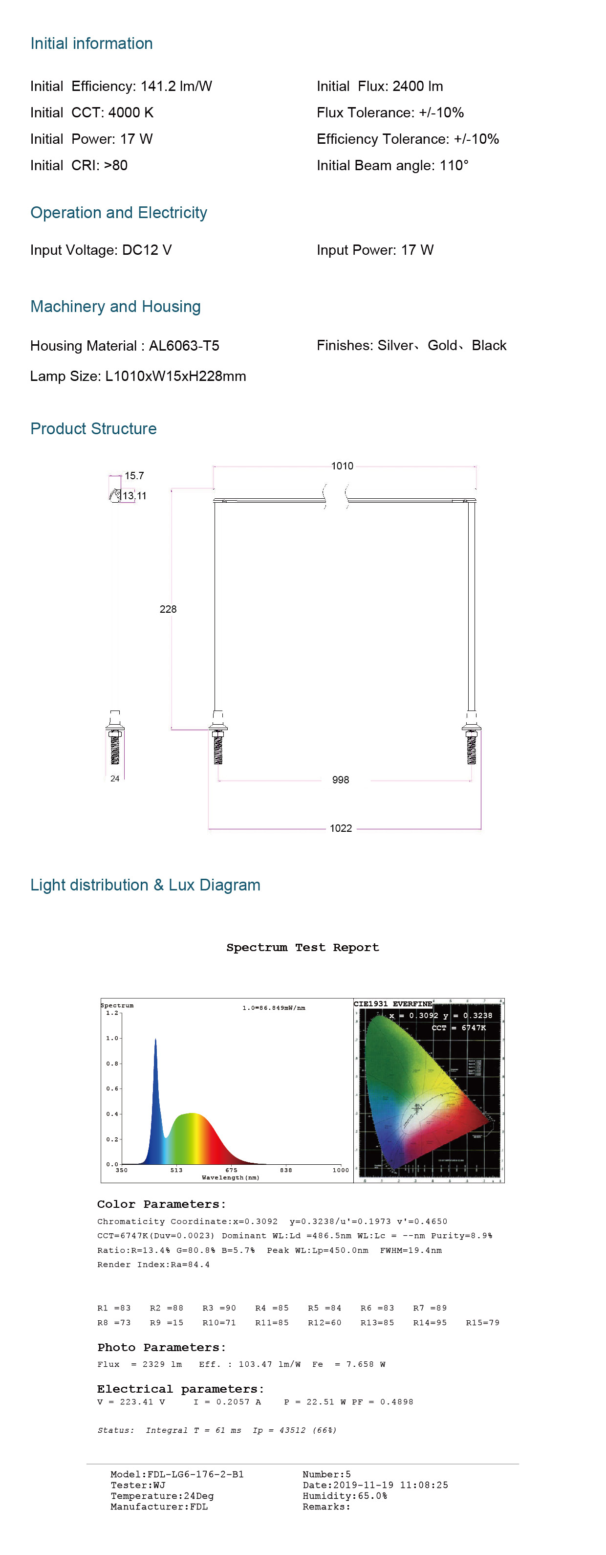 Application: Showcase Lighting CCT: 3000K 、4000K 、6500K Remarks: Appearance color and color temperature can be customized