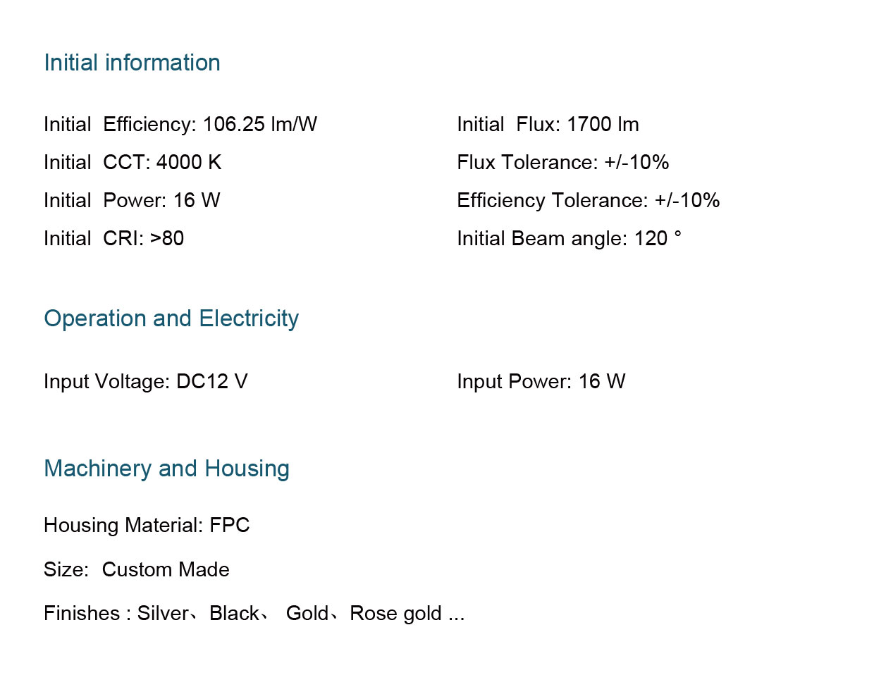 CCT: 3000K 、4000K 、6500K