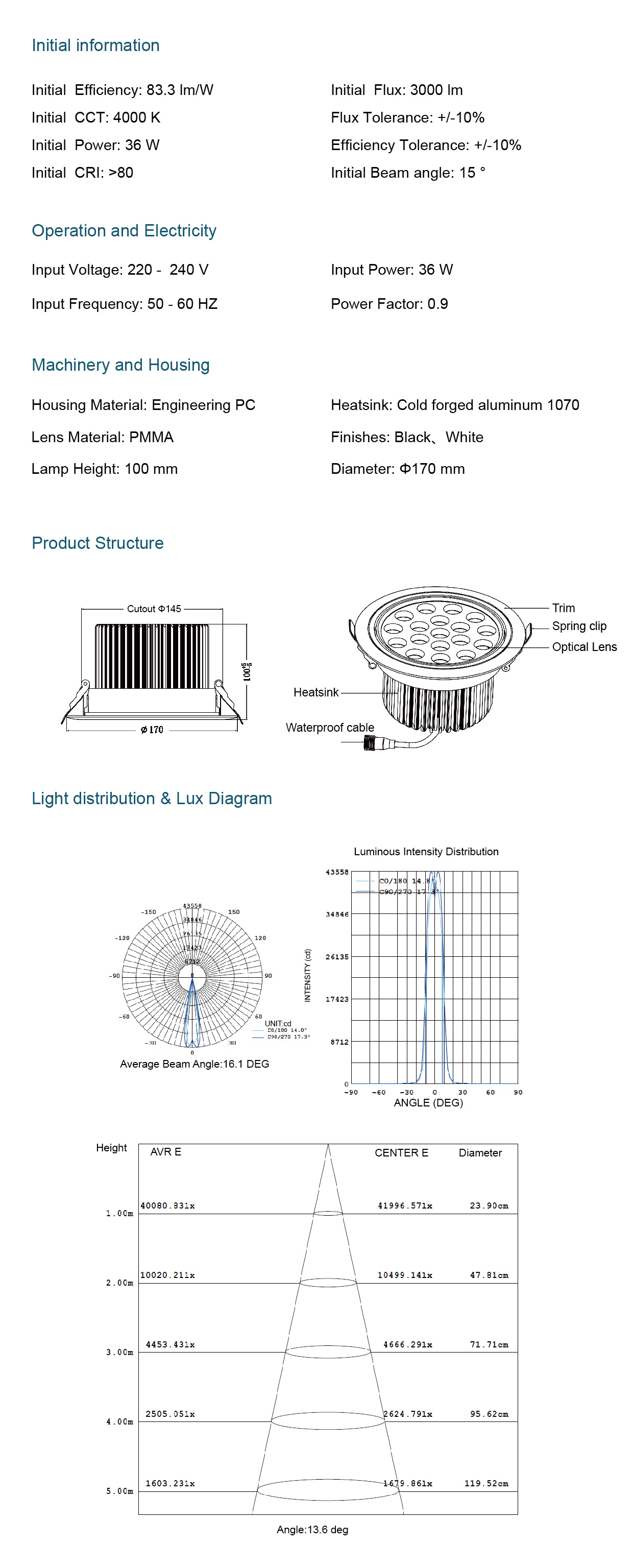 Total Flux: 3000 lmCENTER E : 10500 lx 2m